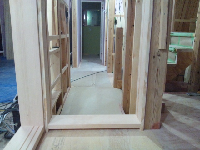 ドア枠も、床板同様無垢材を、使用して作りました。
