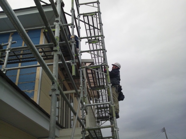 秋葉区蕨曽根 T様邸リホーム、外壁カバーリング工事風景です。