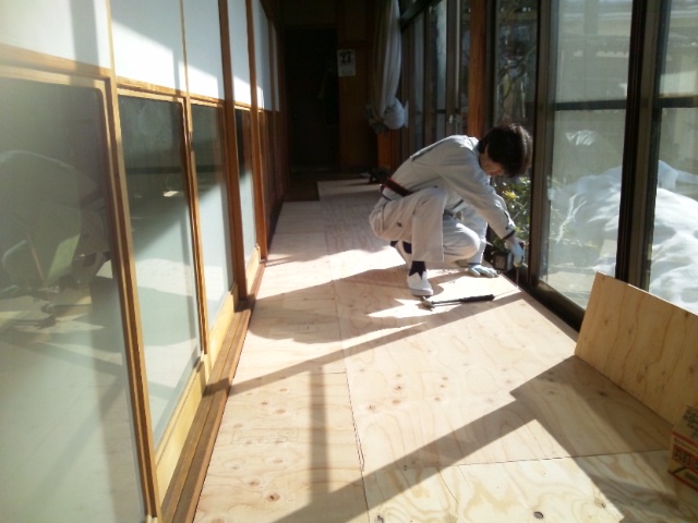 張り替えといっても、今までの床板の上に、12㎜の合板