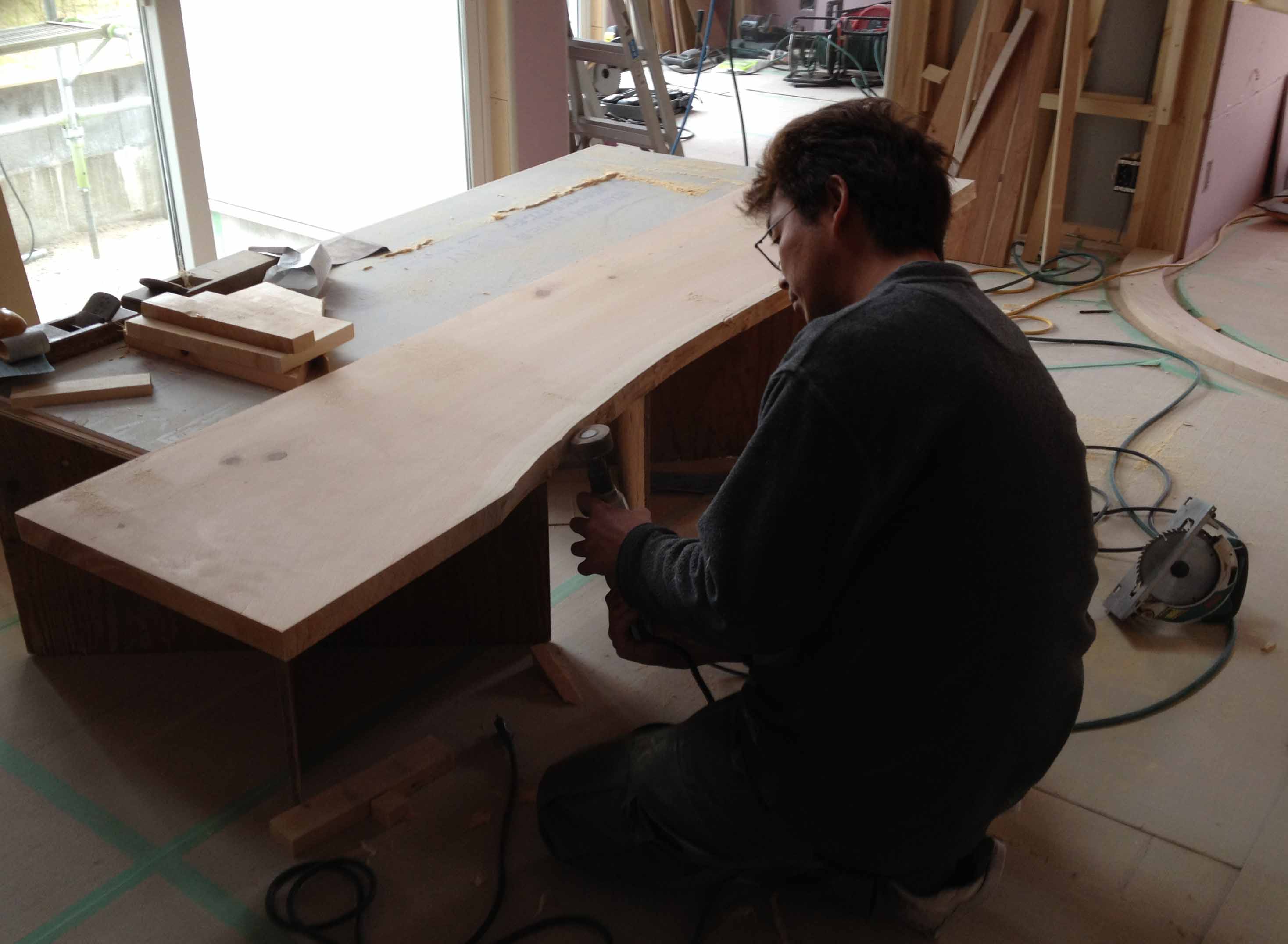 五十嵐棟梁がじっくりと仕事に取組んでいる様子です。