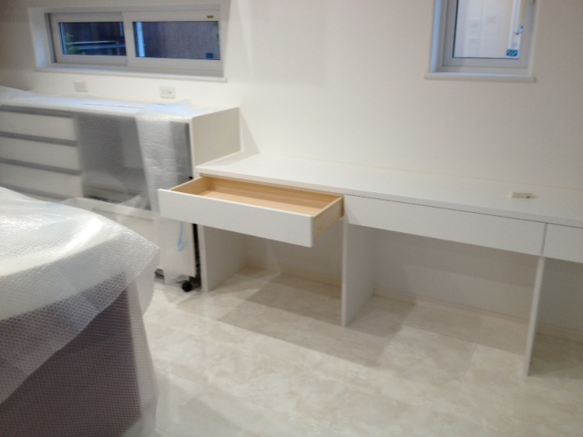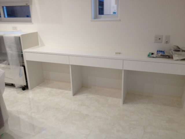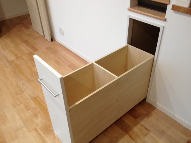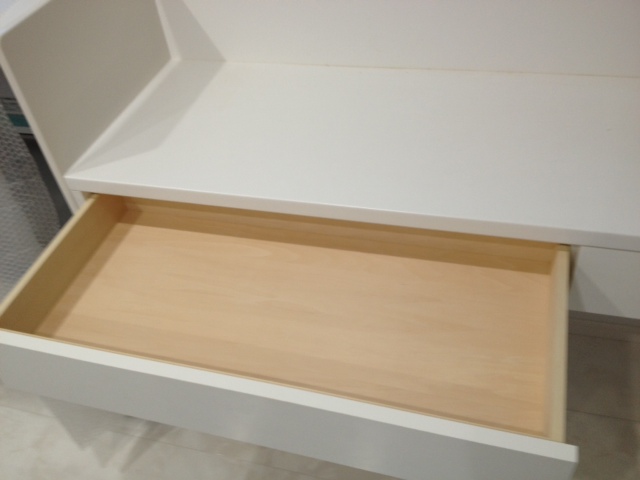 食器棚の隣のカウンターもこのように「引き出し」を備え付けました。