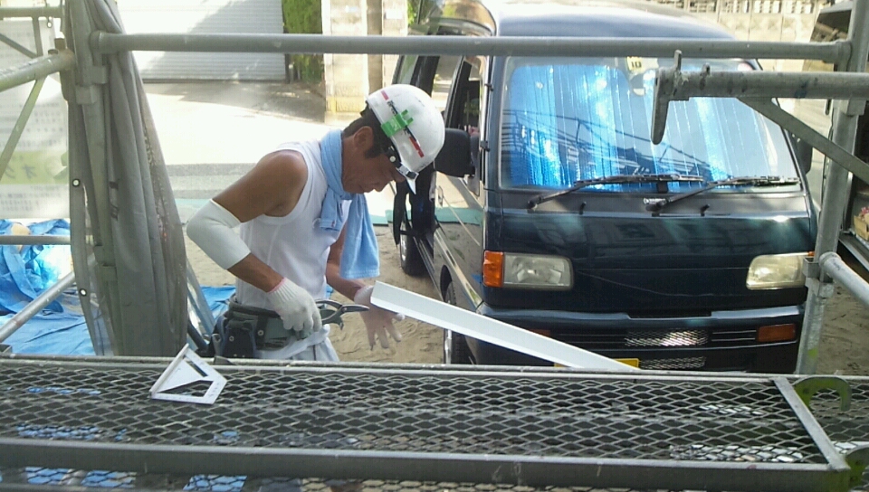 今日は、外周部化粧破風と、水切りを