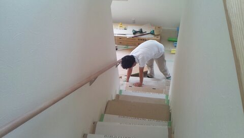 養生を剥ぎ、戸・ドアを釣り込みました
