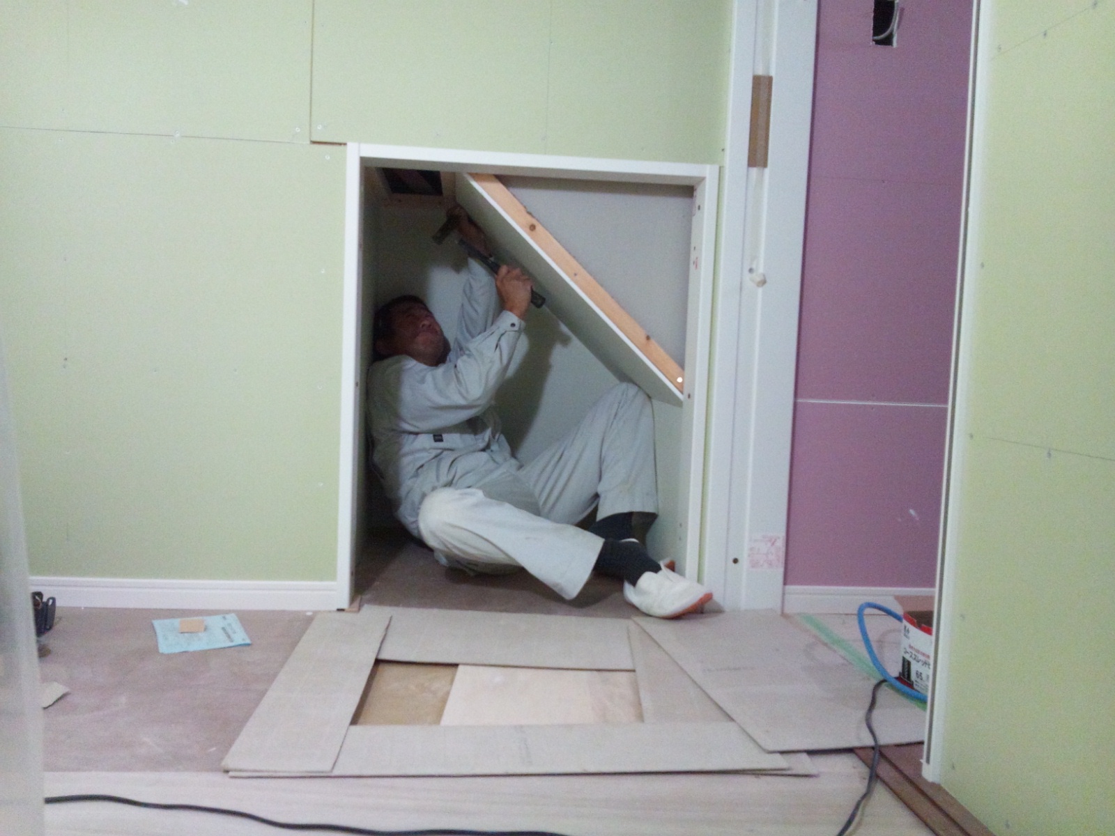 階段下物置スペースを作っているところです