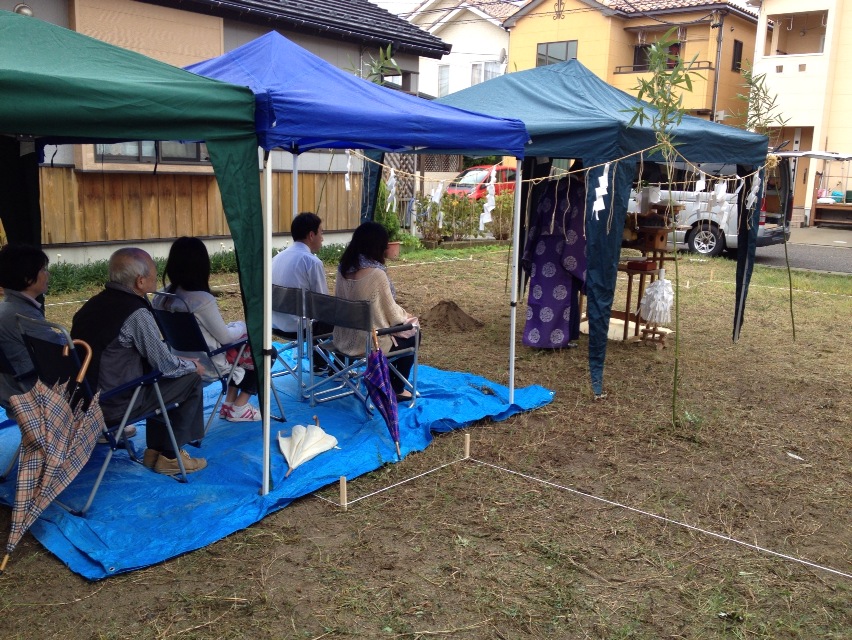 途中、結構いい雨が降りましたが(地鎮祭終了後片付ける祭に)、