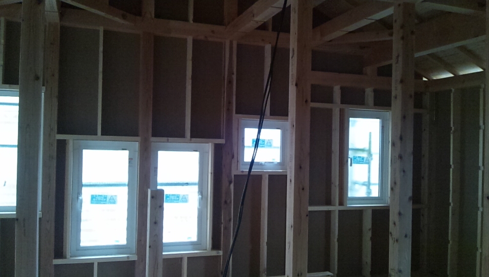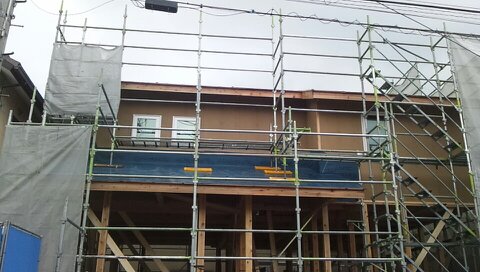 2階外周部面材を貼り終え、いよいよ