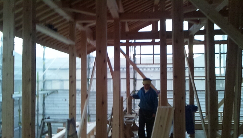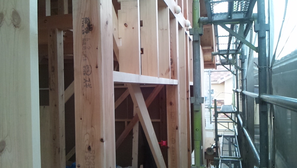 間柱を2階外周部にたちあげました