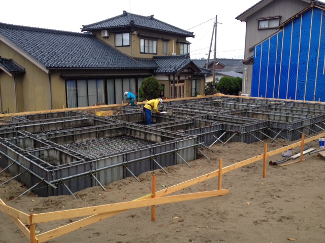 五十嵐1の町の現場も鉄筋の検査も無事に終了し、型枠も組み、アンカーボルトのセットも終わり
