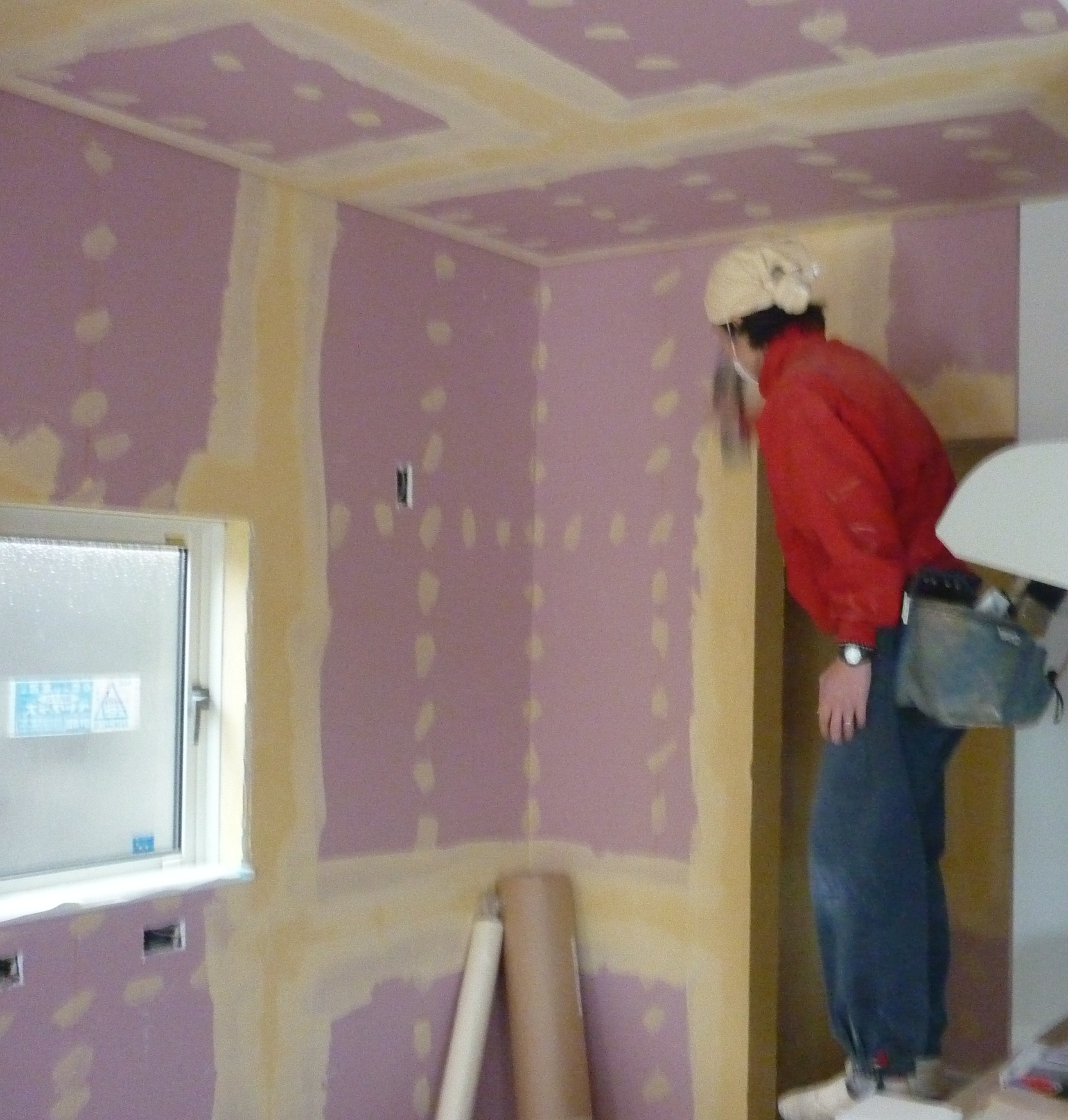 先回パテを塗った後に、クロスを