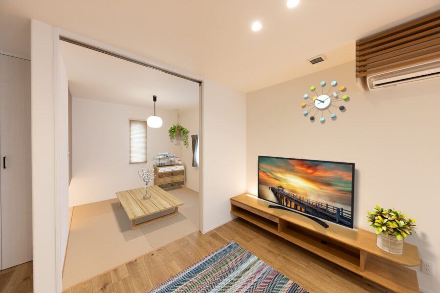 LDKに隣接する和室は、家族のくつろぎや来客時の多目的スペースとして柔軟に利用できます。